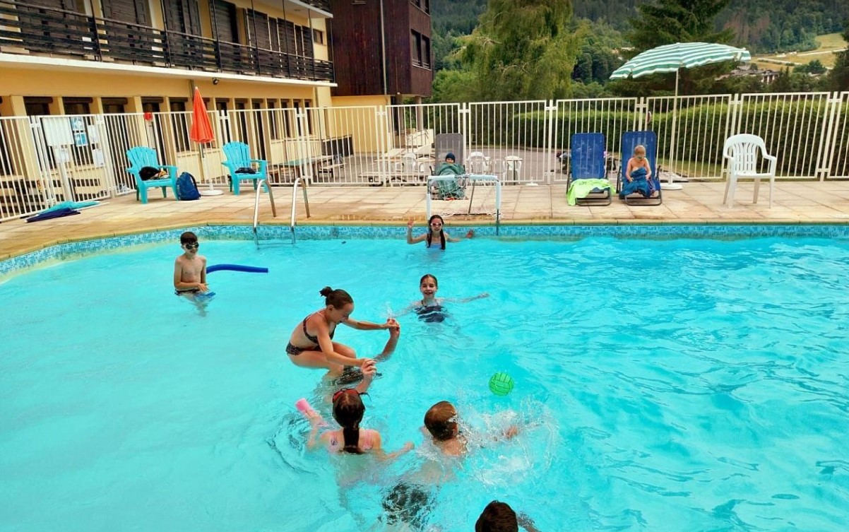 Hébergement : Centre de vacances, chambres de 4 à 6 lits, équipé de salles da'ctivité et d'une piscine